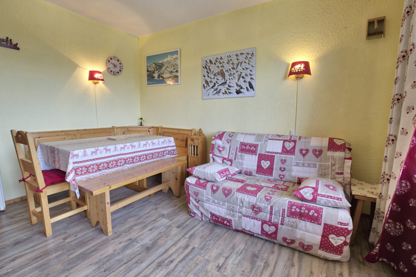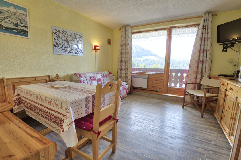 Studioflat DOUCHKA. Studioflat with cabin bedroom, 4 persons, 26 sqm, 1st floor, SOUTH exposure with balcony, view on the Mont Charvin and the valley.