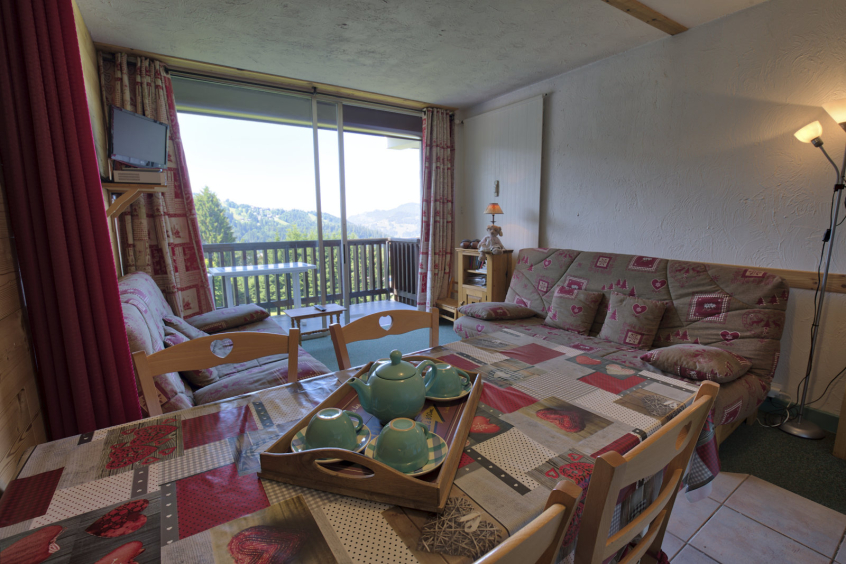 Studioflat GARBIT. Les ALPAGES 2. 4 persons, 26 sqm, 5th floor, SOUTH exposure with balcony, open view on the village, the Mont Charvin and the valley.