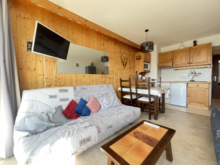 Studioflat FOUQUIER. Les ALPAGES 3. 2/4 persons, 24 sqm, 7th floor, SOUTH exposure with balcony, open view on the village, the Mont Charvin and the valley.