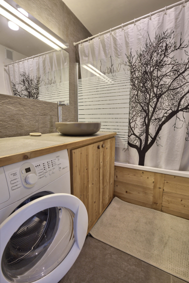 *BATHROOM with bath, washbasin, WASHING MACHINE. Separated WC.