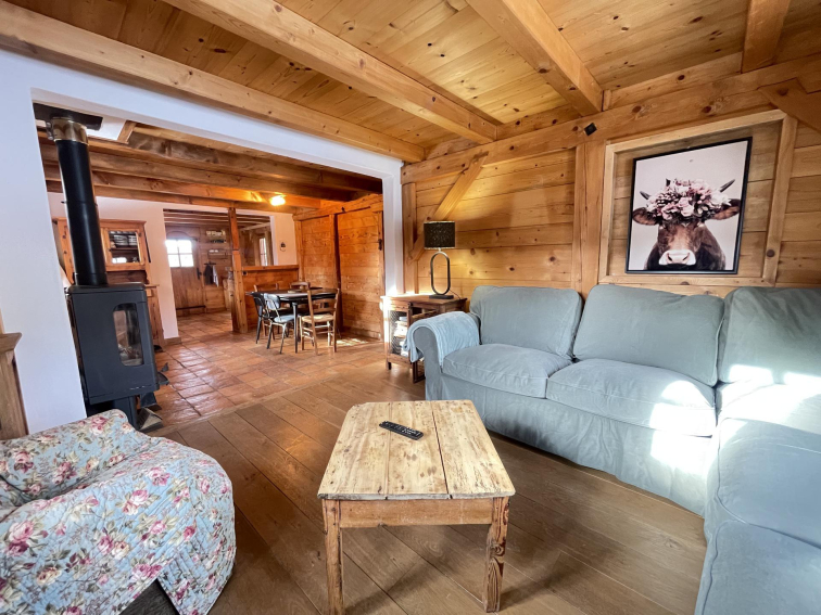 Cozy chalet with a mountain style for 4 to 6 people, located in Le Cheloup, 5 minutes drive from the village and Mont Rond. Access to the slopes is also possible by the ski bus which passes right by. Spread over two levels, it offers a relaxing setting with a beautiful view of the forest and the mountains. You will also appreciate its south-facing terrace!