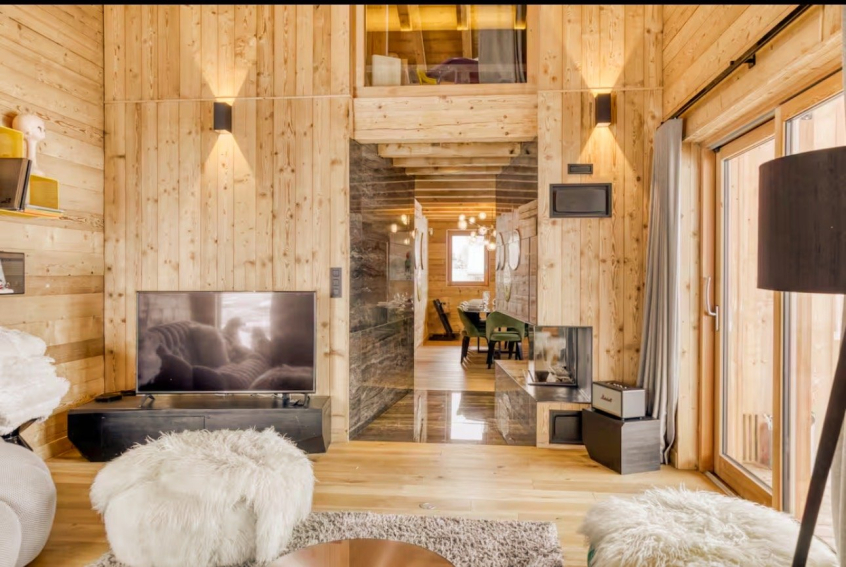 Brightly lit with large bay windows, the Chalet has a 2nd terrace on the ground floor with a top-of-the-range Jacuzzi and opening onto a garden overlooking the French Alps.