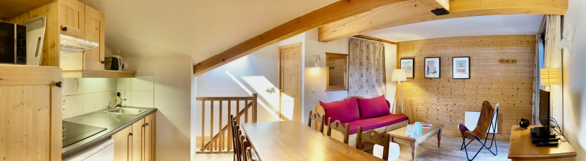 Charming duplex apartment for rent in the center of the village of Notre Dame de Bellecombe, in a residence with swimming pool. Ideal for 6 travelers, you'll appreciate its calm, proximity to shops and view of Les Aravis.