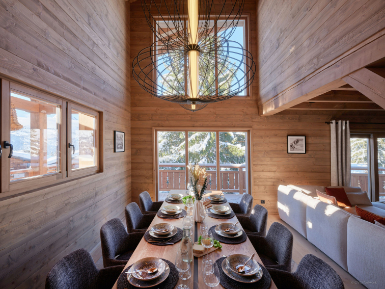 This luxury chalet, designed to accommodate up to 13 people (including a maximum of 12 adults), offers generous space and top-of-the-range facilities for an exceptional stay in the Alps.