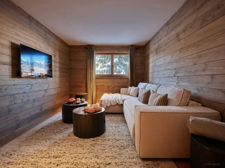 On the lower floor, a space dedicated to leisure and relaxation includes a sofa, table soccer and a side kitchen, and leads to a separate TV room. The chalet also features a sauna, for a well-deserved moment of well-being after your day's activities.