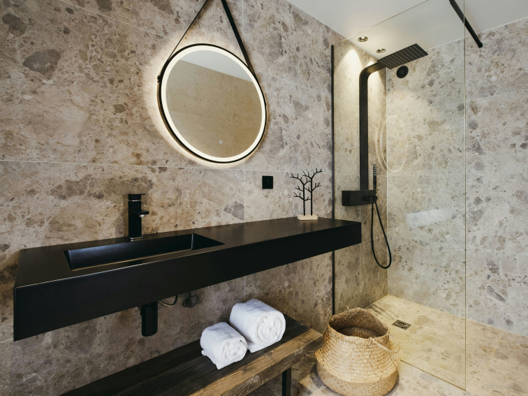 The first two bedrooms are on this floor, while the other three are on the upper floor. The fact that each of the four double bedrooms has its own shower room is a particularly practical advantage. Three of them also have televisions, and one even offers the pleasure of a private balcony!