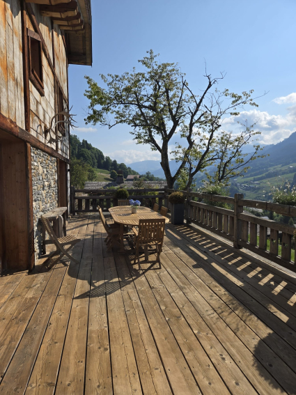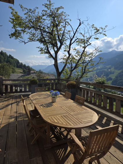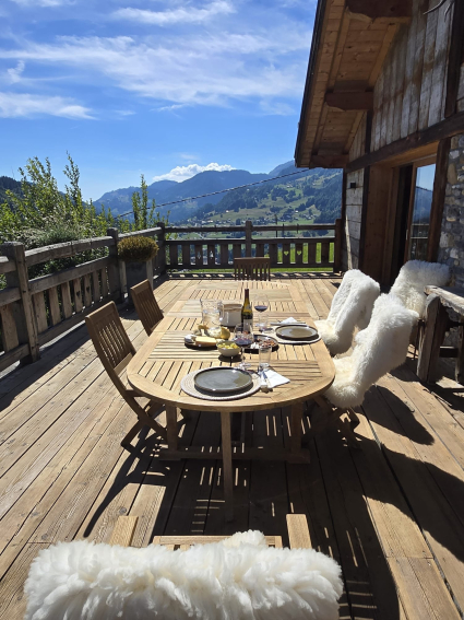 With its large picture windows, the Chalet is very bright, and has a 2nd terrace opening onto a garden overlooking the French Alps.