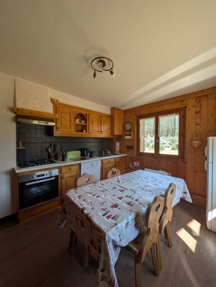 Exceptional location for this apartment right on the slopes. Put on your skis or snowshoes and you're right on the slopes. Located on the 1st floor of a chalet, it comprises a kitchen/dining room with fridge, oven, microwave, dishwasher, washing machine, filter coffee maker, Nespresso coffee maker, electric kettle, toaster, electric raclette machine, electric fondue machine, a living room with corner sofa TV and wifi, a first bedroom with a double bed, a second bedroom with a 1-seater bunk bed (please note that the upper bed of a bunk bed is forbidden for children under 6) and a BZ double sofa bed below the bunk bed, (Umbrella bed available on request at no extra charge), a bathroom with shower and washbasin, hairdryer. Separate WC. Outside parking space. This apartment has a west-facing balcony with a view of the ski lifts and the village. The apartment is 700 m from the village center and 1 km from the Intermarché supermarket. This rental is perfect for a family wishing to ski, thanks to its proximity to the ski lifts. The property is classified as 2-star furnished tourist accommodation.