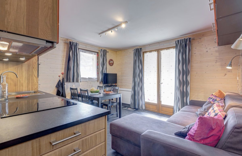 It has been completely renovated, sleeps 4 and is located on the ground floor of the Résidence La Logère.