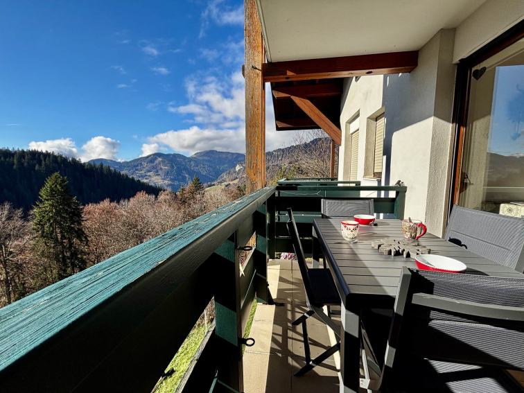 Cosy, warm 42 m² apartment, ideal for 4 to 6 people. Located on the 1st floor, it features a south-facing terrace with unobstructed views of the forest and mountains.