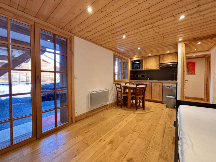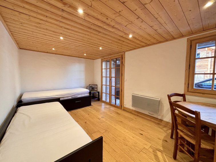 This studio is attached to the chalet, with the possibility of closing it off to guarantee greater privacy. It comprises :