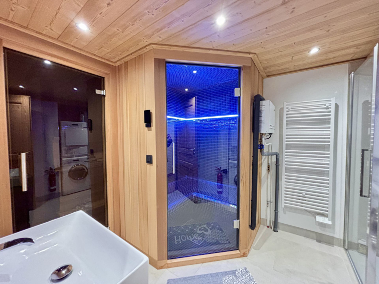After a day in the mountains, the chalet invites you to relax in its wellness room with sauna and hammam, ideal for a moment of absolute relaxation.