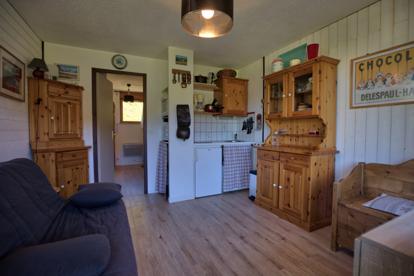 - Couchages : coin montagne avec lits superposés (2x90), séjour avec un canapé lit deux personnes (140). Literie équipée de couettes.