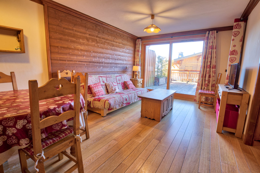La résidence Les Logis de Bellecombe est située à 200m des pistes de l'Espace Diamant et à 500m du centre village et de l'école de ski.