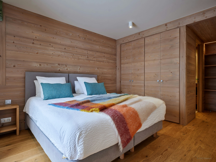 Trois des quatres chambres doubles du Chalet Gridloup occupent le rez-de-jardin. Notez que l’une d’elles peut également être préparée avec deux lits jumeaux, selon vos besoins. Elles disposent toutes d’une salle d’eau privative. À l’étage supérieur, la dernière chambre accède à un balcon et à une salle de bains.