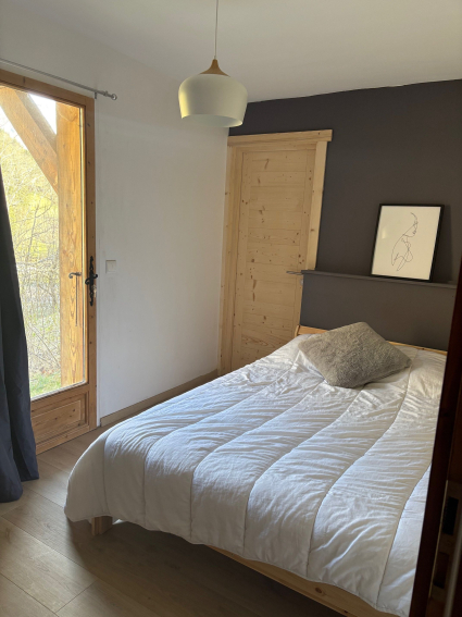 •A l’étage : mezzanine avec coin TV, 1 grande chambre (lit 160x200) avec balcon, salle de bain privative (baignoire et WC)